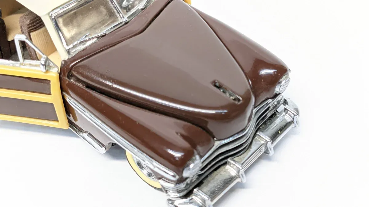 This is a 1952 Hudson Hornet convertible with custom lowering springs and a non-original Continental kit installation.