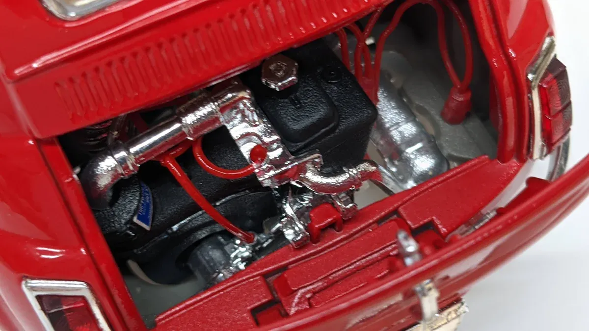 It features a rear-mounted, air-cooled two-cylinder engine and the classic "suicide doors" or front-hinged doors depending on the specific production year.